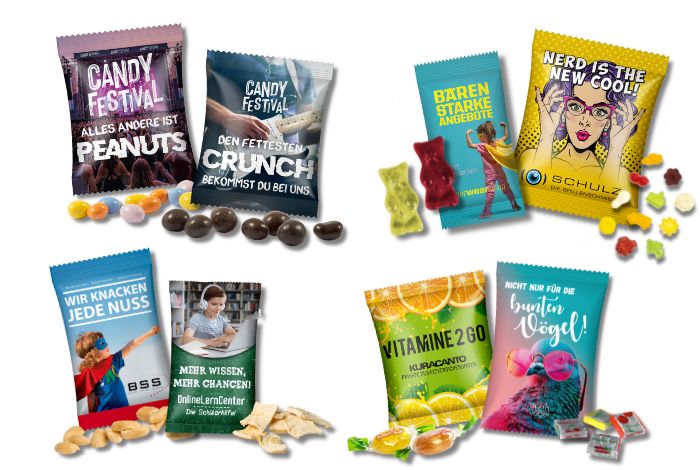 Ob Fruchtgummi, Schokolade, Nüsse oder andere Snacks – CyclePaper eignet sich für zahlreiche Füllungen. Alle passenden Produkte sind im Katalog klar gekennzeichnet und machen die Auswahl besonders einfach.